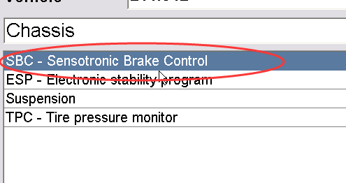 Sélectionnez le châssis: SBC – Sensotronic Brake Control