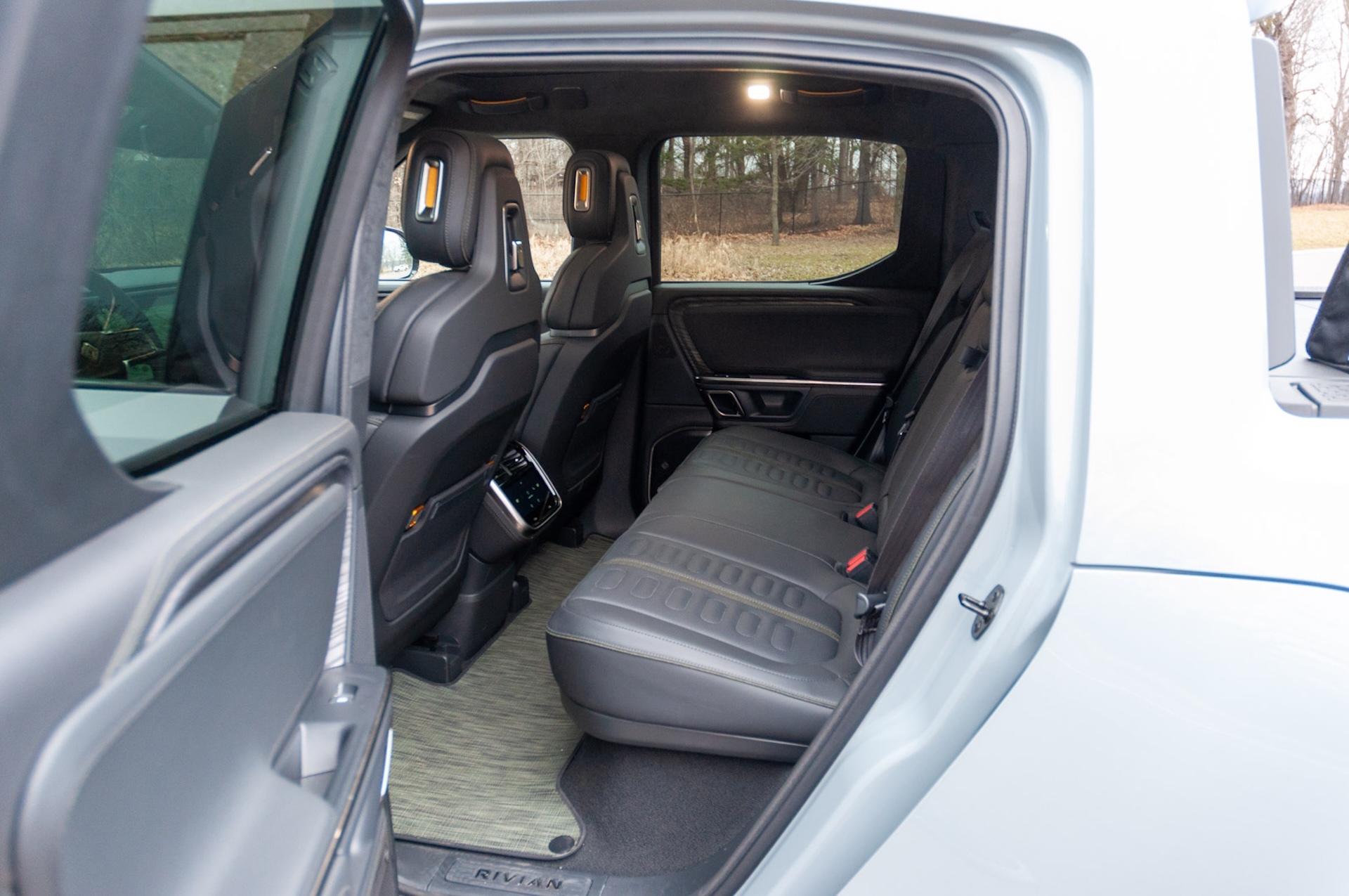 Die Situation wird für die hinteren Insassen komplizierter, was die geplanten Änderungen für die R2-Serie motiviert haben soll. Bei den R1S und R1T der zweiten Generation ist der manuelle Notfallzug in den Hecktüren nicht direkt zugänglich.