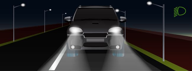 Dipped headlights, also called low beams, are the lights that drivers tend to use the most. They are located at the front of the car and are angled downward toward the road to increase visibility without dazzling other drivers or cyclists. These lights are not as bright as full beam headlights, but they are still bright enough to illuminate the road ahead of you. You can usually turn them on with a switch on a dashboard dial or an indicator stalk. Many new vehicles are equipped with sidelights that require no human intervention. They turn on automatically when the engine is running to ensure the car remains visible during the day.