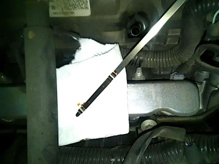 - Check the fluid level and condition. If it’s not clear (contaminated) or the level is lower than expected, there might be a leak in the system.