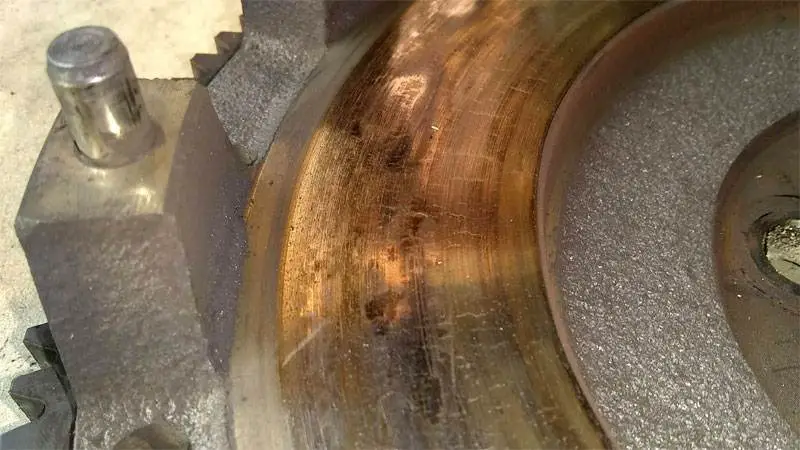 Superficie del volante motor después de conducir con un embrague malo durante demasiados kilómetros.