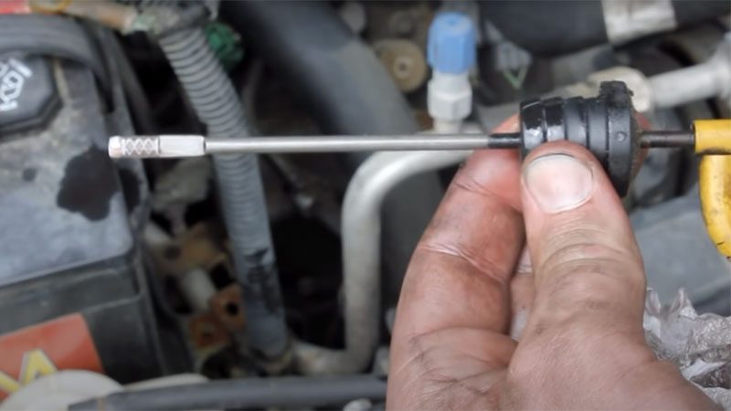 ゲージを完全に元の位置に戻し、再度引き抜きます。これにより、最初の取り外し時にゲージに残っていた残留フルードではなく、現在の作動フルードレベルの真のスナップショットが得られます。