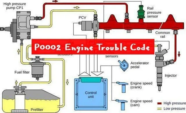 P0002故障コードの原因と症状を解説。燃料ボリュームレギュレータ制御回路の問題によるエンジン警告灯や燃費悪化などのトラブル解決に役立つ診断情報を提供します。