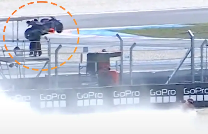 Après l’accident, Pedro Acosta est allé vérifier l’état du caméraman et a même signé un morceau de l’équipement endommagé en guise de souvenir, un geste très apprécié. L’opérateur camera a confirmé n’avoir été que témoin de l’impact, la moto n’ayant heurté que le matériel. Une frayeur immense tout de même, face à une machine de compétition devenue projectile incontrôlé.