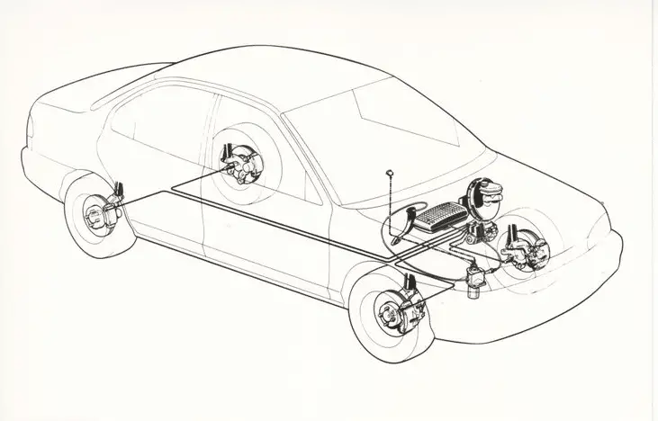 Le TCS a une structure assez simple, comprenant un capteur de vitesse partagé avec le système de freinage antiblocage et un câble relié à la soupape de contrôle de traction automatique (ATC), relié à l’ECU.