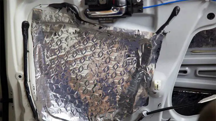 Procurez-vous des tapis insonorisants comme Dynamat . Vous pouvez les placer sous votre plancher et derrière les panneaux de porte de vos portes afin de réduire le bruit extérieur (y compris le vent).