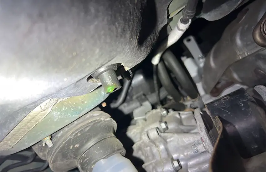 Le diagnostic commence toujours par une inspection visuelle pour identifier tout problème évident. Si rien n’est visible, un colorant UV et de l’huile traceuse sont injectés dans le système, qui est ensuite rechargé. Après que le client a roulé quelques jours, le véhicule est ré-inspecté pour localiser la fuite grâce à la trace fluorescente laissée par le colorant.