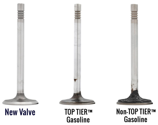 La recherche a vérifié que l’essence Top Tier peut garder les composants du moteur jusqu’à 19 fois plus propres que les carburants avec le niveau de détergent minimum requis. Aujourd’hui, 52 marques d’essence répondent à la norme Top Tier; une liste peut être trouvée ici . recommande d’utiliser de l’essence Top Tier pour éliminer et prévenir les dépôts dans le moteur, maximiser les performances du véhicule et l’économie de carburant, et réduire les émissions d’échappement.