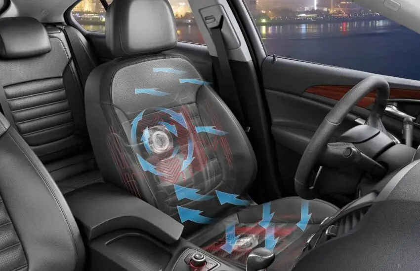 Охлаждающие и вентилируемые сиденья помогают сохранять прохладу, но единственная разница заключается в том, что вентилируемые сиденья используют только неохлажденный воздух. Как следует из названия, вентилируемые сиденья также имеют несколько вентиляторов и воздуховодов в подушке сиденья и спинке, которые циркулируют воздух. Некоторые системы используют эти вентиляторы, чтобы направлять воздух на пассажира через маленькие отверстия в подушке, в то время как другие всасывают воздух в сиденье.